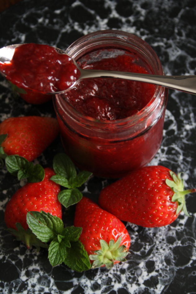 Prendete la polpa che vi è rimasta delle fragole, aggiungete alla polpa la menta tritata abbastanza finemente e lasciate così per 10minuti circa( così da prendere l’aroma della menta). Mettete una pentola dal fondo spesso sul fuoco e versate la polpa con la menta, il succo dei due lime e lo zucchero. Mescolate tutto e fate cuocere per 1 ora, mescolando di tanto in tanto. Una volta pronta versatela nei vasetti, chiudeteli e girateli a testa in giù. Lasciateli così finché non si saranno raffreddati. Se non avete la polpa, vanno benissimo le fragole intere, le tagliate a pezzetti piccoli e seguite lo stesso procedimento sopra.