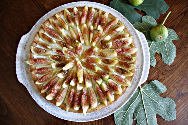 Che crostata!! con marmellata di fichi , crema di ricotta e robiola pepata e fichi freschissimi .
